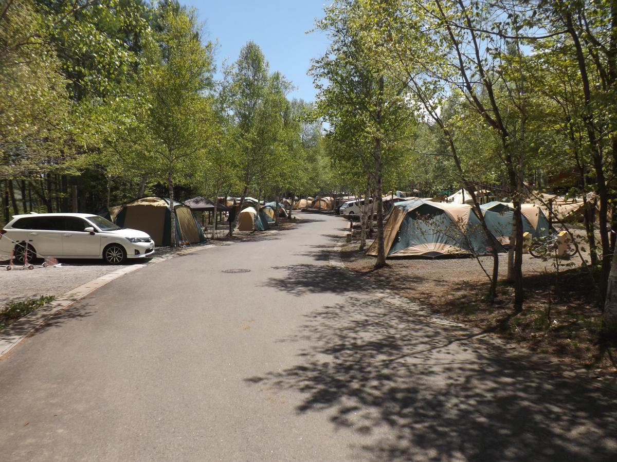 キャンプ場は白樺の木に囲まれていて