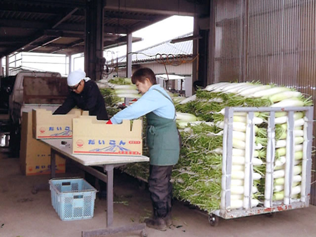 - 大根の収穫(抜き取り)、洗浄、出荷、その他の作業